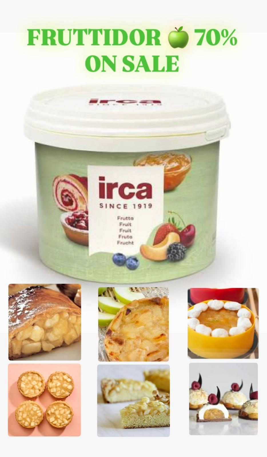 Traditional filling based on apple in pieces (70%). Its convenience of use and its stability in baking and freezing make FRUTTIDOR MELA 70% especially suitable for all pastry making applications.